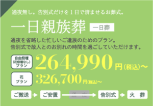 この「1日親族葬」プランは、大きく分けて2つのコースがあり、それぞれの料金は以下の通りです。